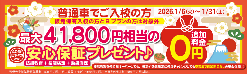 ※はじめて普通車免許を取得される方が対象。仮免再入所の方やAT限定解除の方は対象外です。