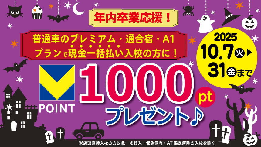 ①上記期間中に普通⾞で店頭直接入校の方(転入、仮免保有、限定解除を除く)