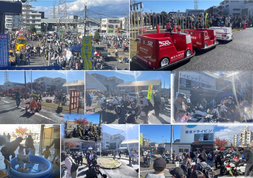 昨年大盛況だった横浜火災予防協会主催、横浜市港北消防署・港北消防団共催の『消防フェア』が11月3日(月)祝日に当校のコースで開催されました。