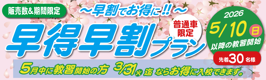 5/10以降の5月中に教習開始!お得に♪効率的に!- 販売数限定