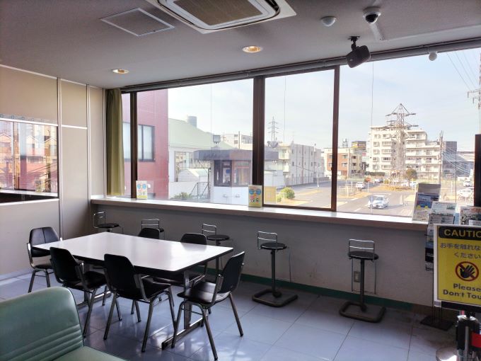 2階ロビーの窓際やテーブル席、3階廊下の窓際のテーブル席など、椅子に座ってのご飲食をお願い致します。